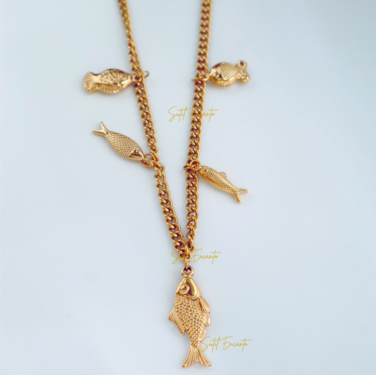 Collar con Peces Material: Stainless Steel 316 (waterproof) Medidas: 16″ collar con extensor 18″