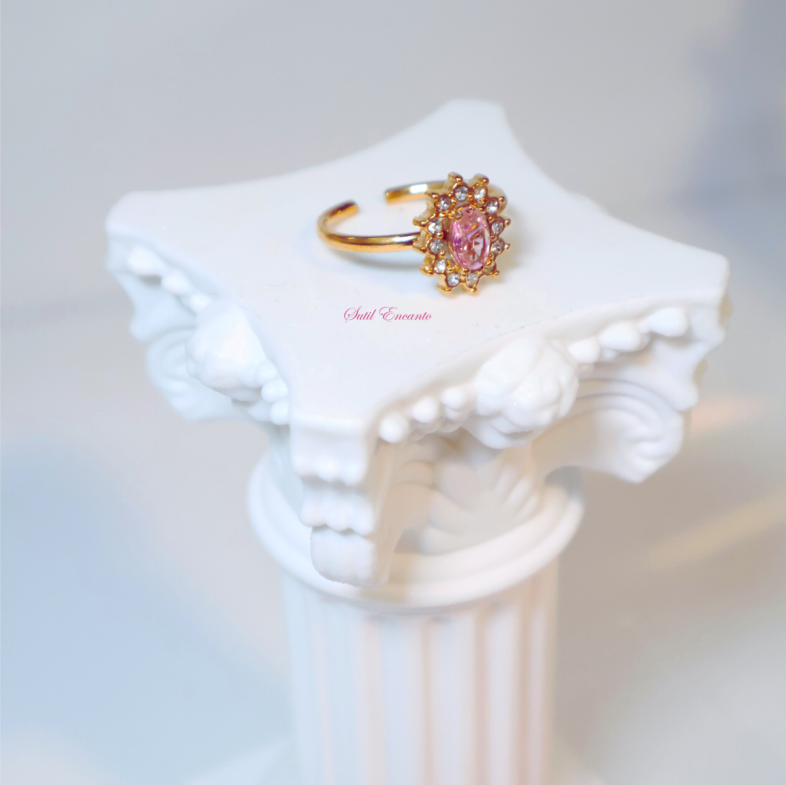 Sortija con una piedra rosa Material: Stainless Steel 316 (waterproof) Medidas: Ajustable
