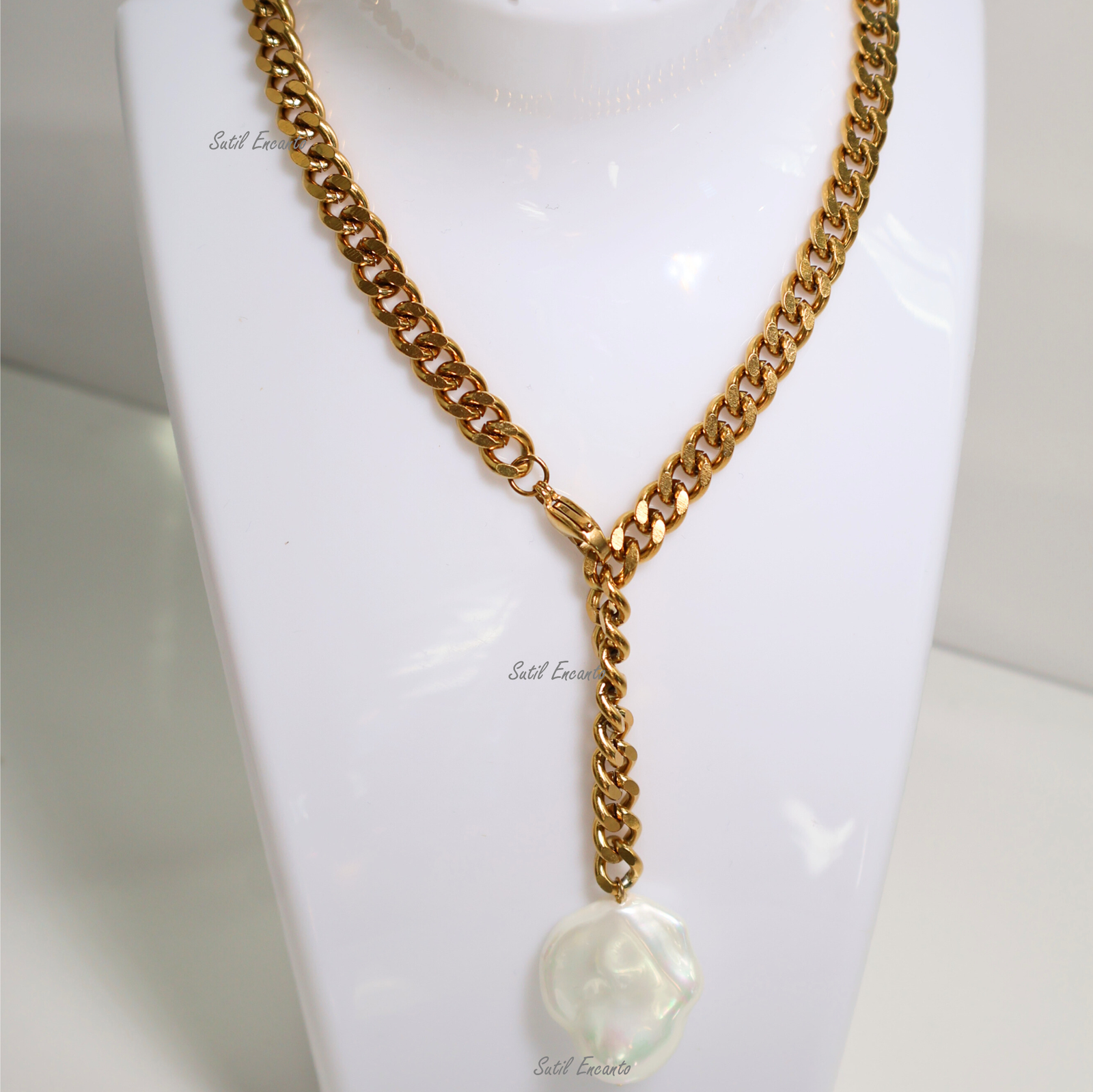 Collar en cadena con perla Material: Stainless Steel 316 (waterproof) Medidas: 17.5″