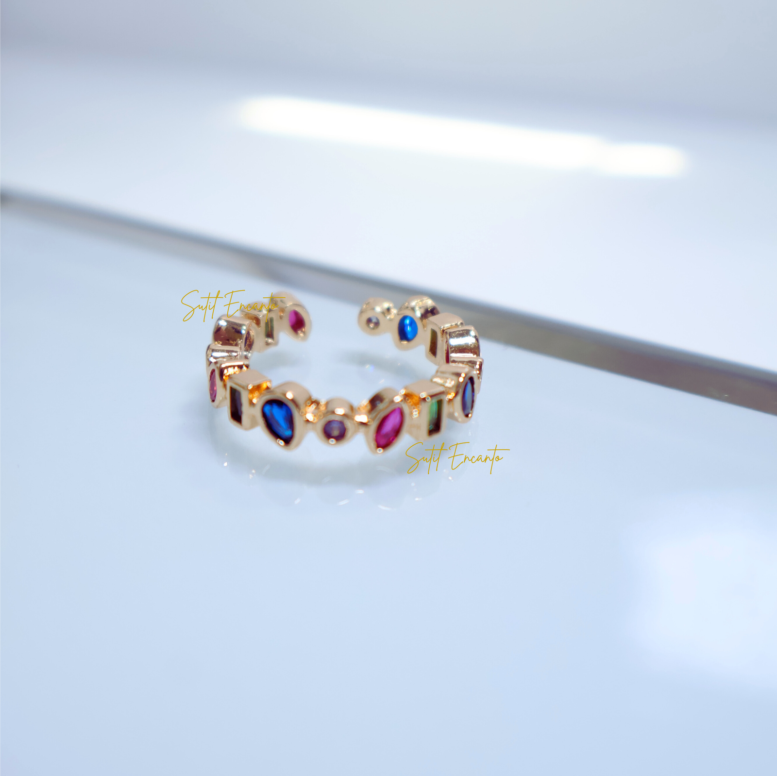 Sortija con variedad de priedritas de colores